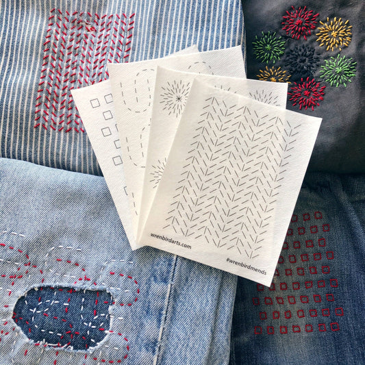 Wren Bird Arts Sashiko Style Lined Mending Transfers