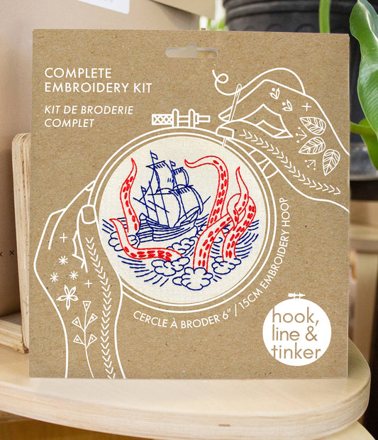 Hook, Line & Tinker Kraken and Ship Complete Embroidery Kit