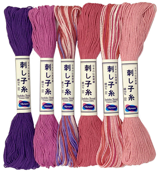 Olympus Sashiko Thread Collection Pink and Purple Colours