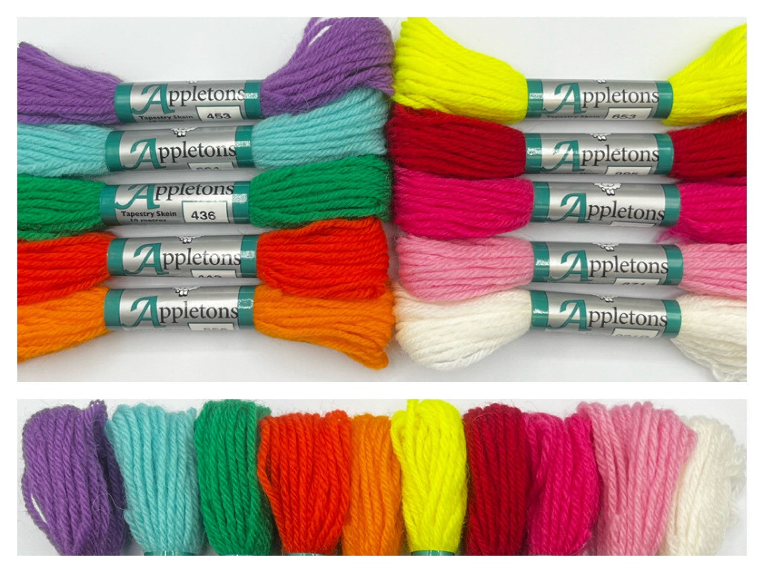 Appletons tapestry wool is 4 ply and can be used for weaving, stitching and needlepoint on 10 or 12 hpi canvas. (It is thicker than Appletons crewel wool which is 2-ply).
