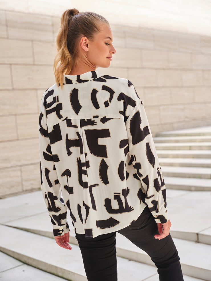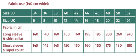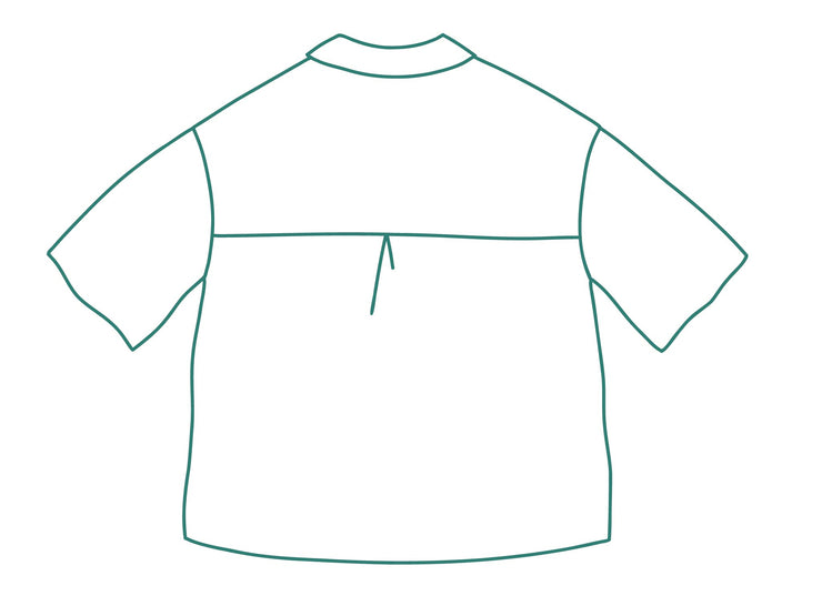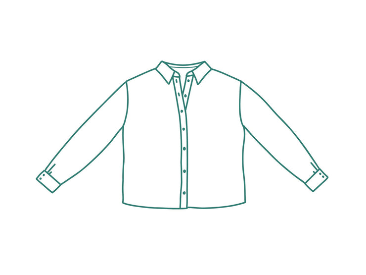 A versatile pattern with an oversized, buttoned shirt in two versions. Choose between a classic shirt collar or lapel collar, and between a long sleeve with cuffs or a wider, short sleeve. A front and back facing are included for the lapel collar
