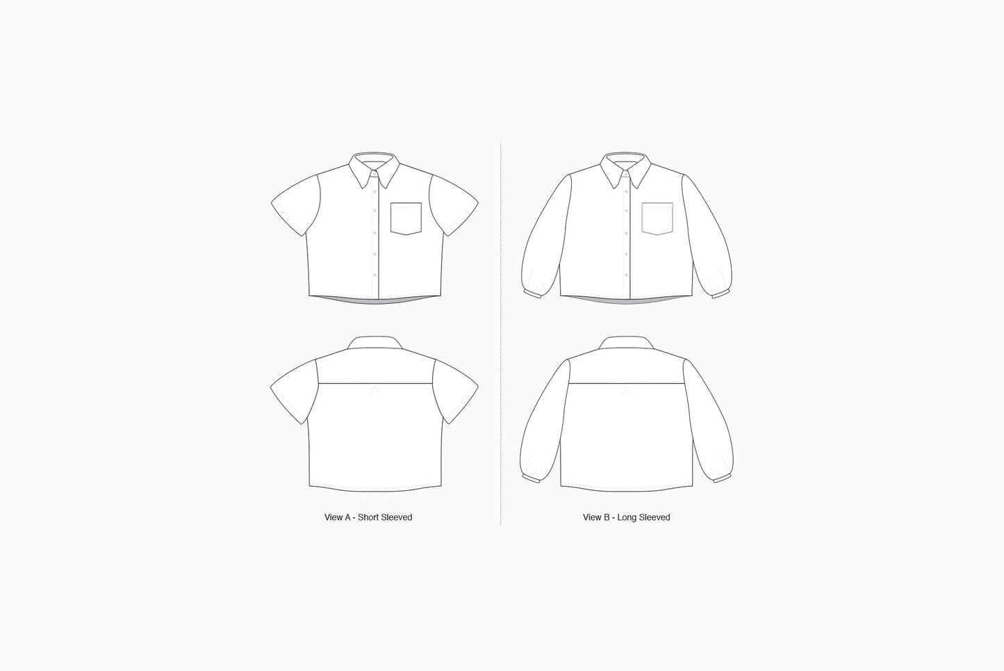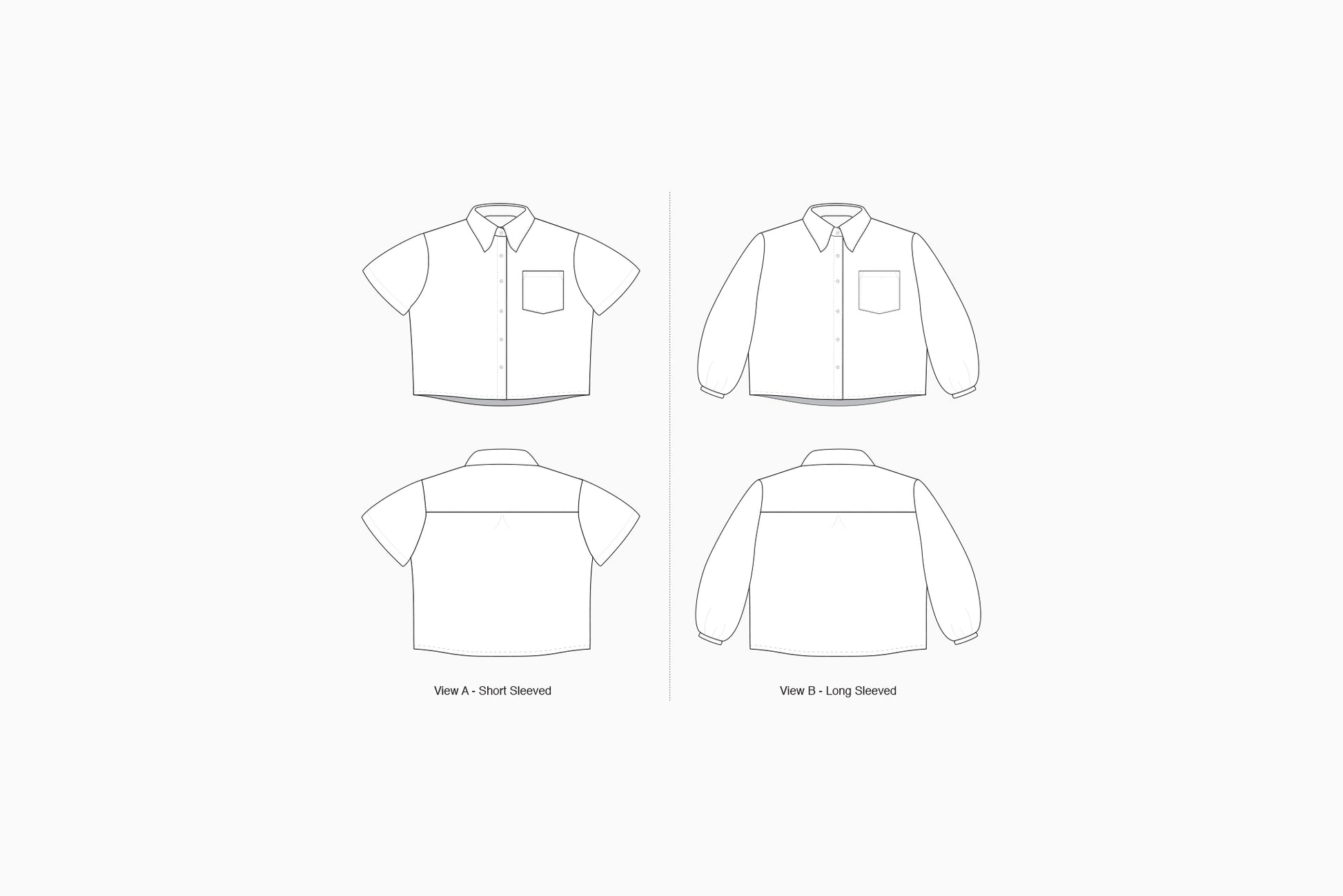 A versatile boxy cropped bodice with collar, featuring two sleeve styles--short sleeve and puffy bishop sleeve. Layer it with jumpsuits, dresses and jumpers for the cooler seasons or wear as is for the warmer months.