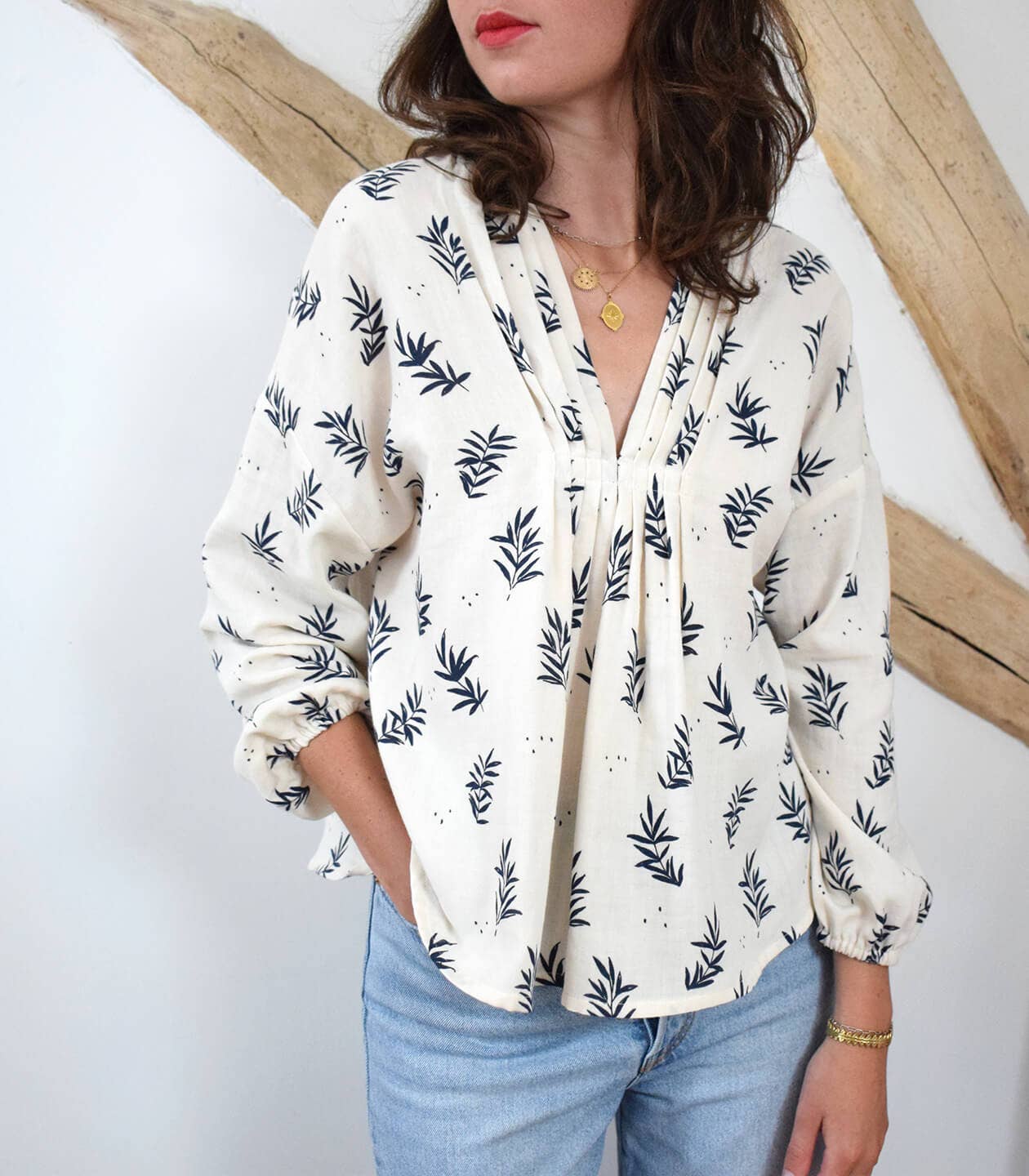 Espellete by Cousette is a dress or shirt with a pretty pleated neckline. There are three possible versions, including a blouse (with or without sleeves); short dress; maxi dress made by adding a large ruffle.
