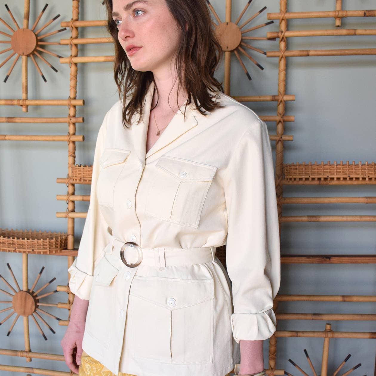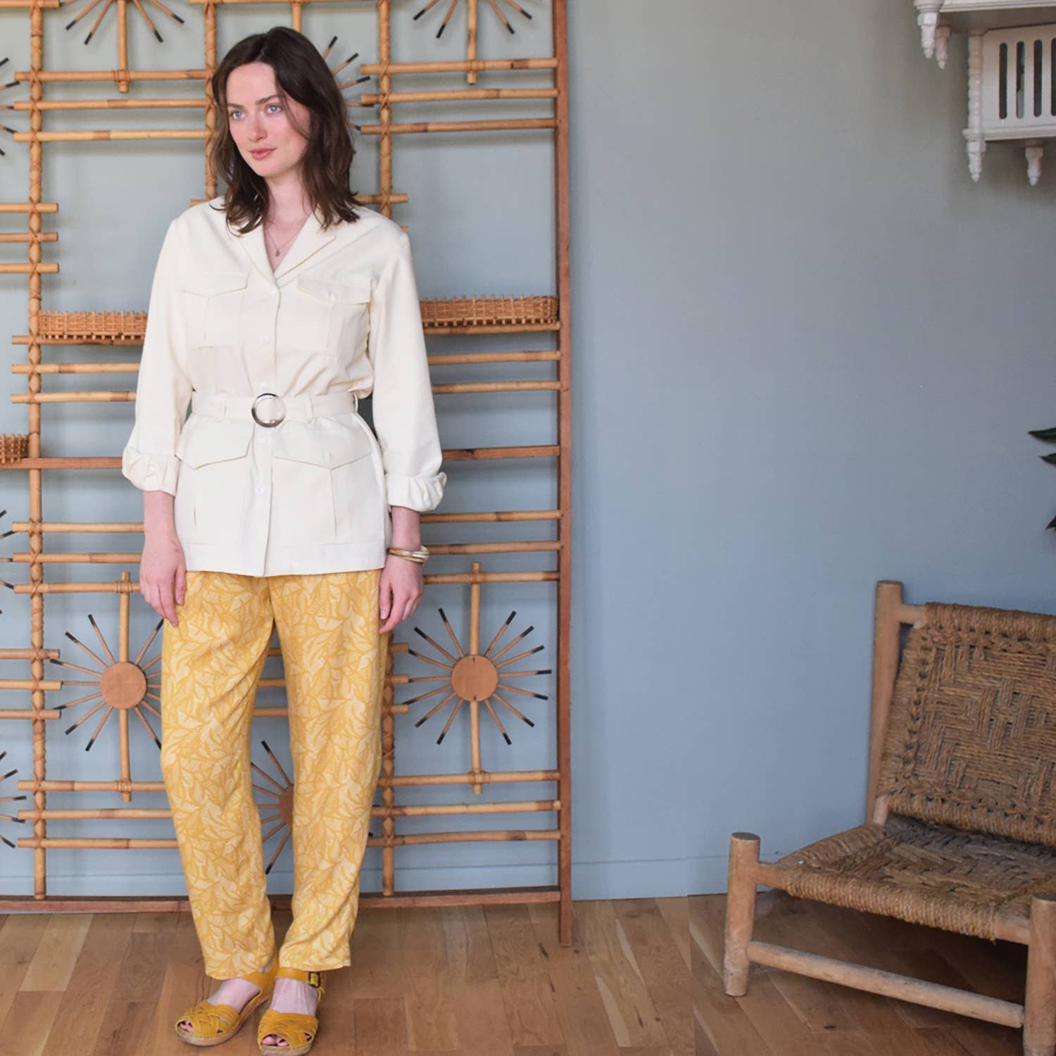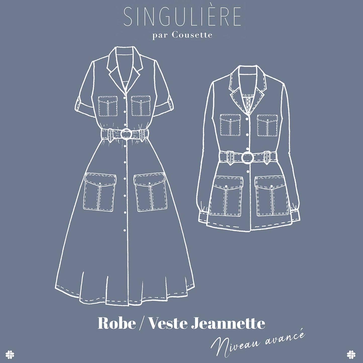 With its tailored fit, Jeanette is great for the office or for nights out when you want to look sharp but not overdressed. Jeannette is available in a dress or jacket design with a tailored collar, pockets with hollow pleats and flaps. The sleeves of the dress are short with a lapel and a tab while the sleeves of the jacket are long with a cuff.