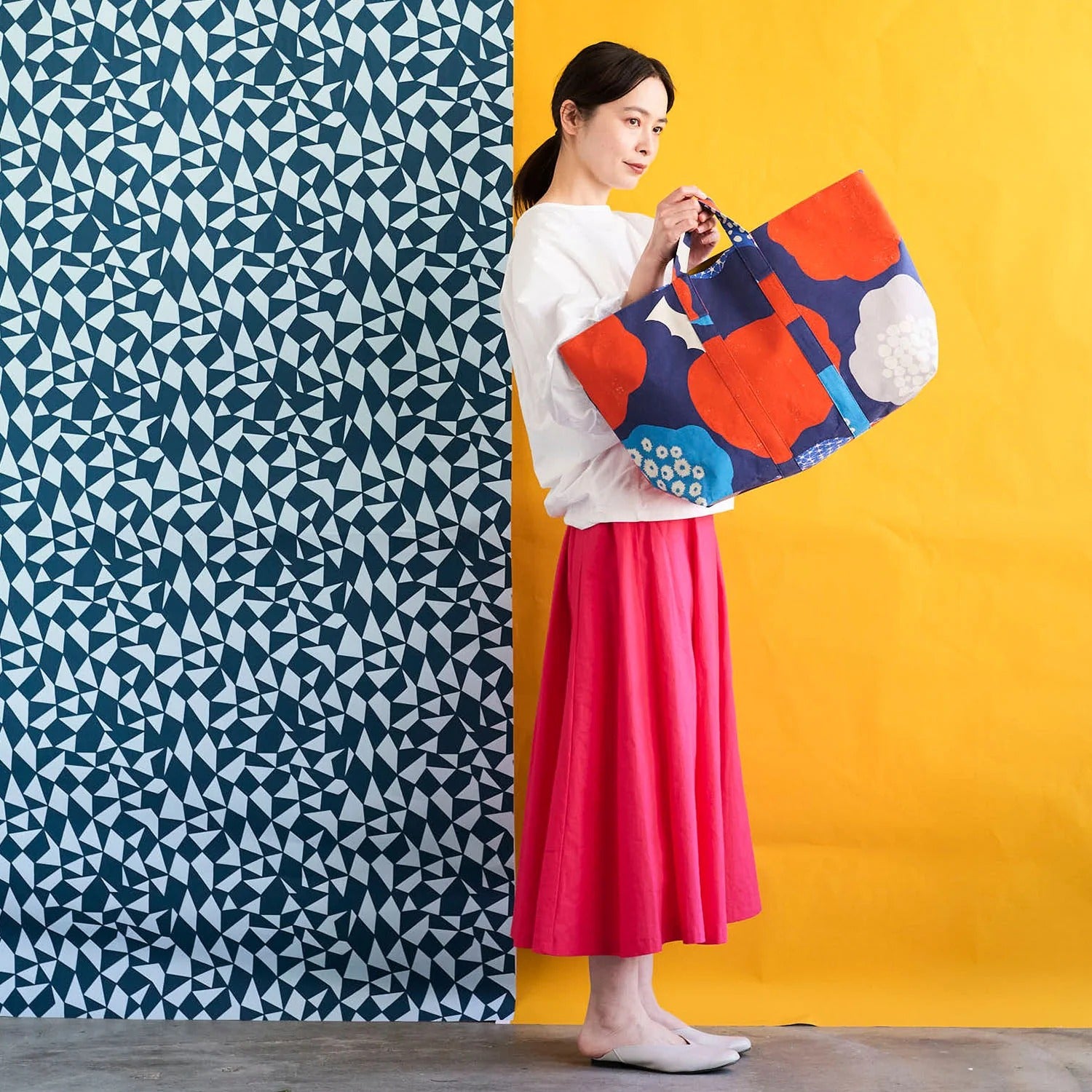 This eye-catching cotton-linen by designer Etsuko Furuya features large, cloud-like flower motifs that make a striking statement. It is great for sewing structured garments, home decor like cushion covers, bags and pouches, and aprons.