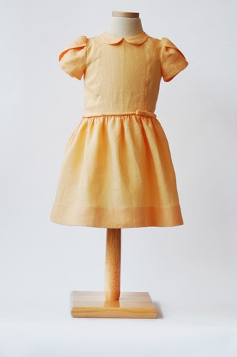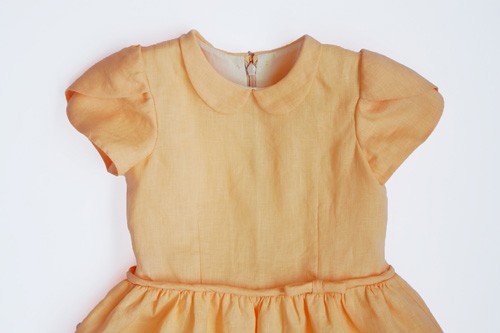 The ultimate fully-lined, special-occasion dress with crinoline. View A features a Peter Pan collar, tulip cap sleeves, tubular waistband, and front bow detail. View B is sleeveless and has a modified Peter Pan collar and a bow at the back. Note that this is a fitted dress. Be sure to measure your child carefully when choosing a size. We recommend making a bodice muslin to ensure a good fit.