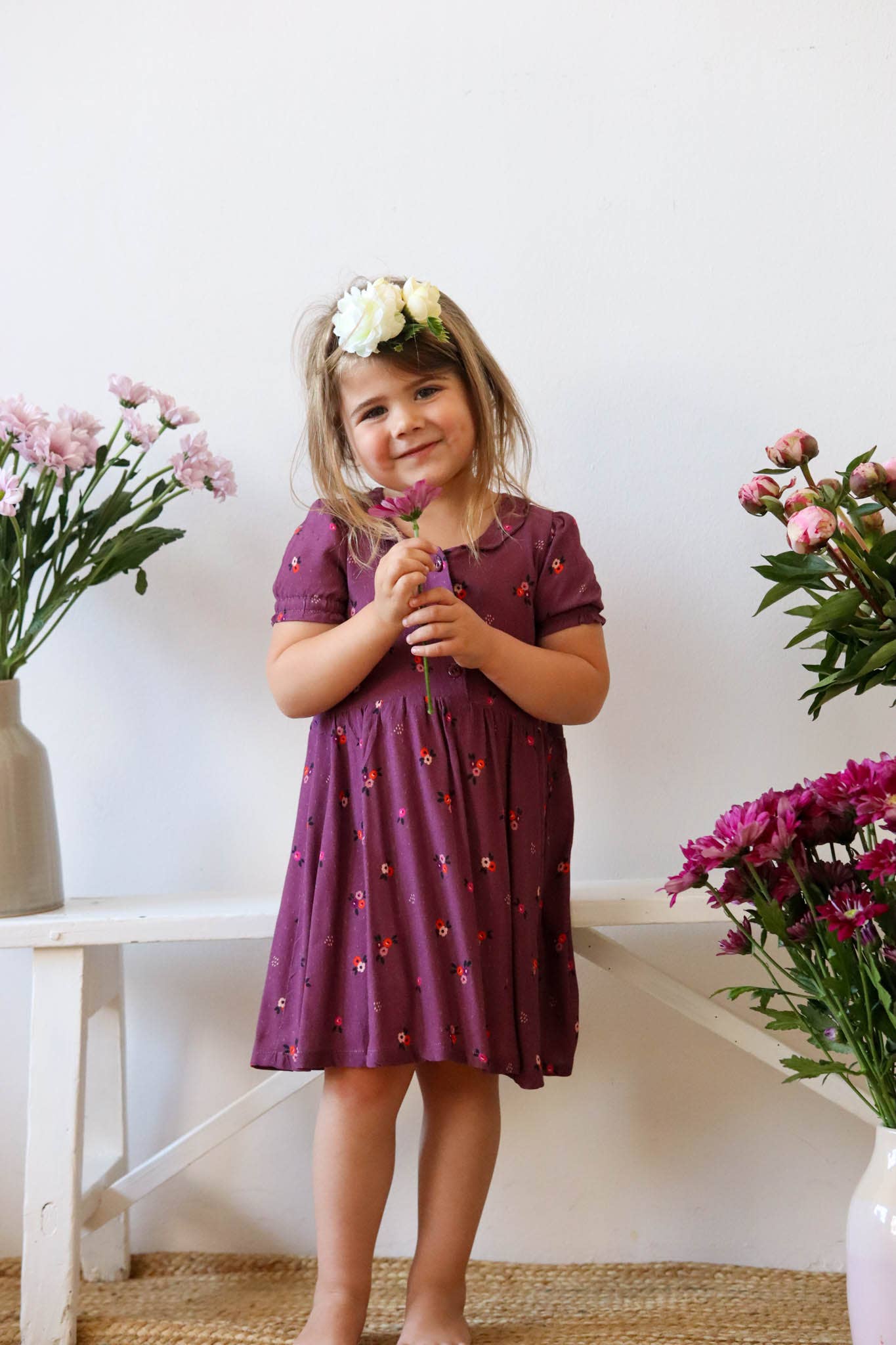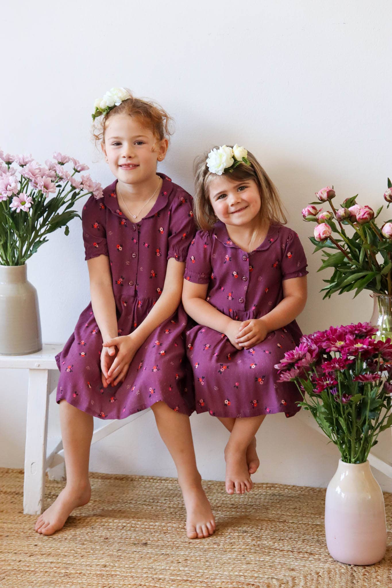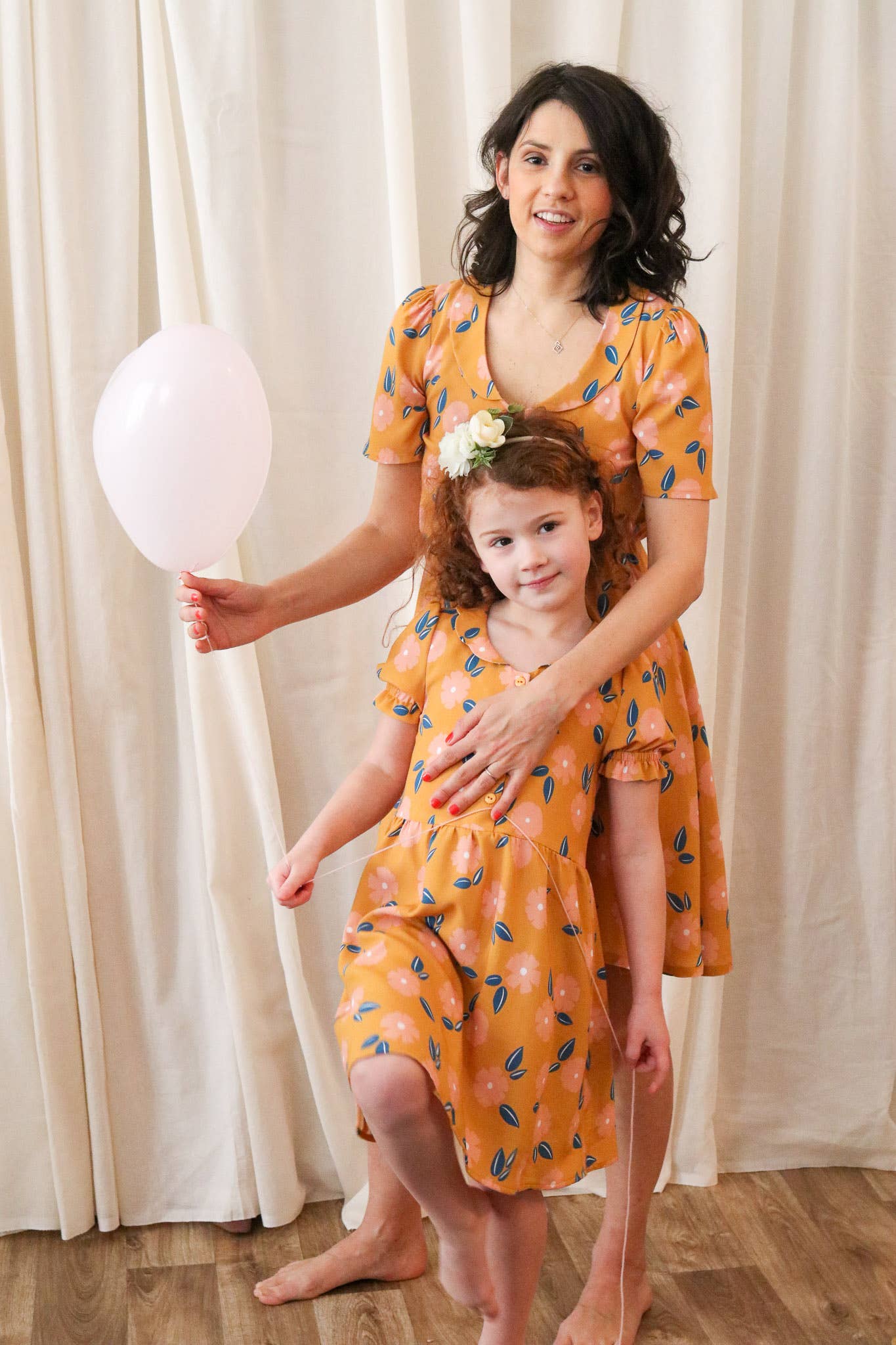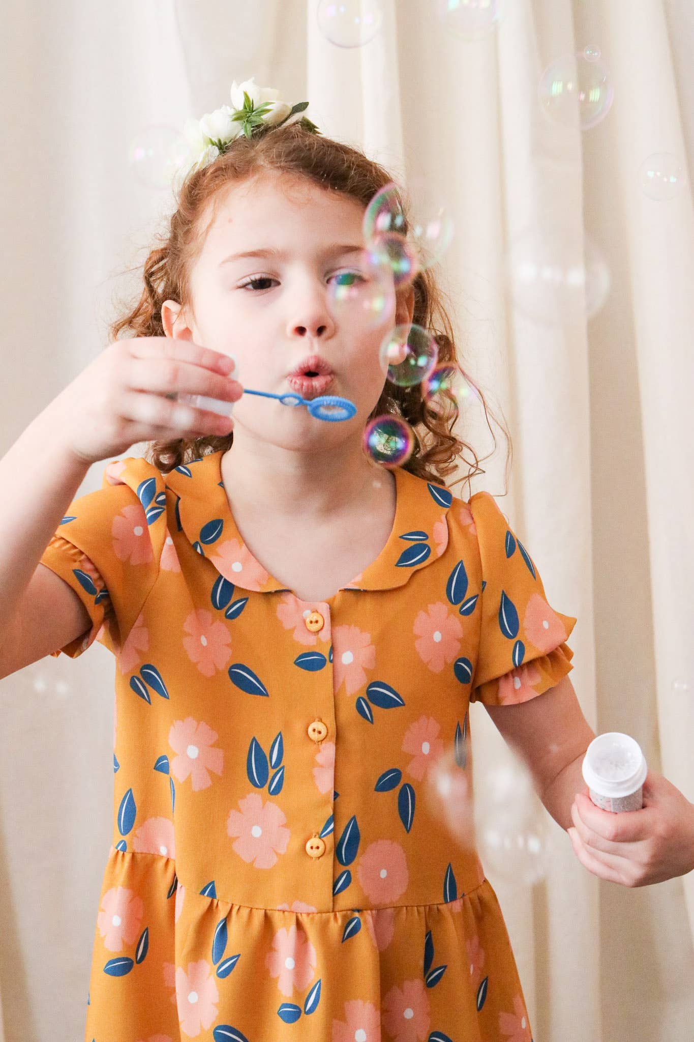 Imbued with softness, Comète is a little dress with a ruched waist, decorated with a scalloped collar that sits delicately over the neckline. You can choose between pretty long or short ruffled sleeves.