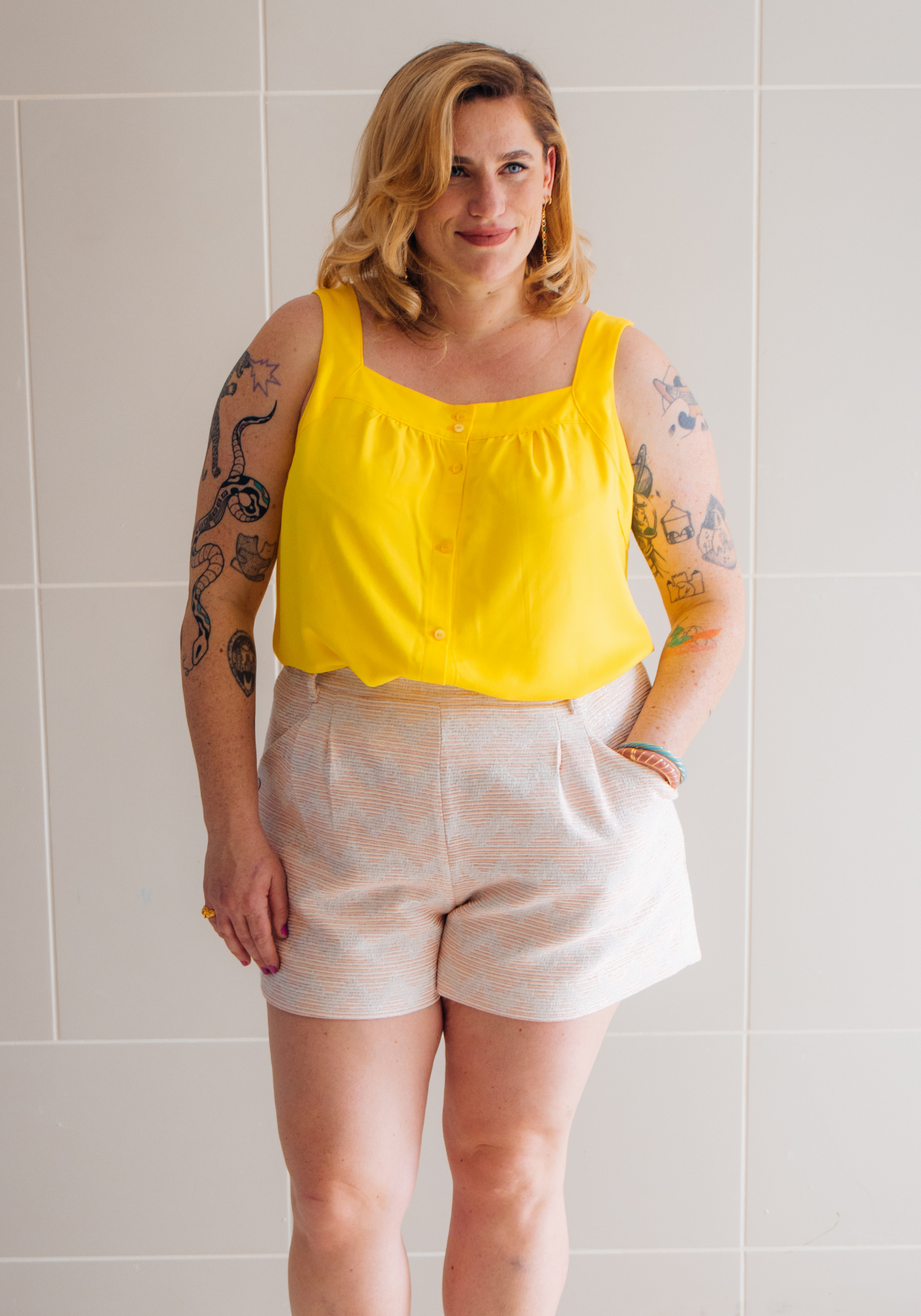 The Grand Bain shorts pattern by Maison Fauve is the perfect choice for summer with pleats at the front and pockets at both the front and back.
