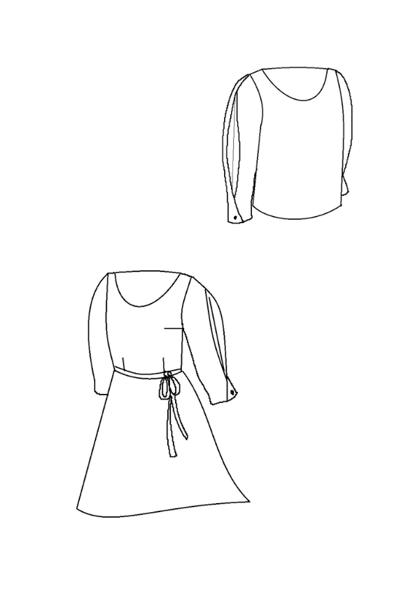 - 140 cm of fabric in 34-46 and 260 cm in 48-56 for the blouse version