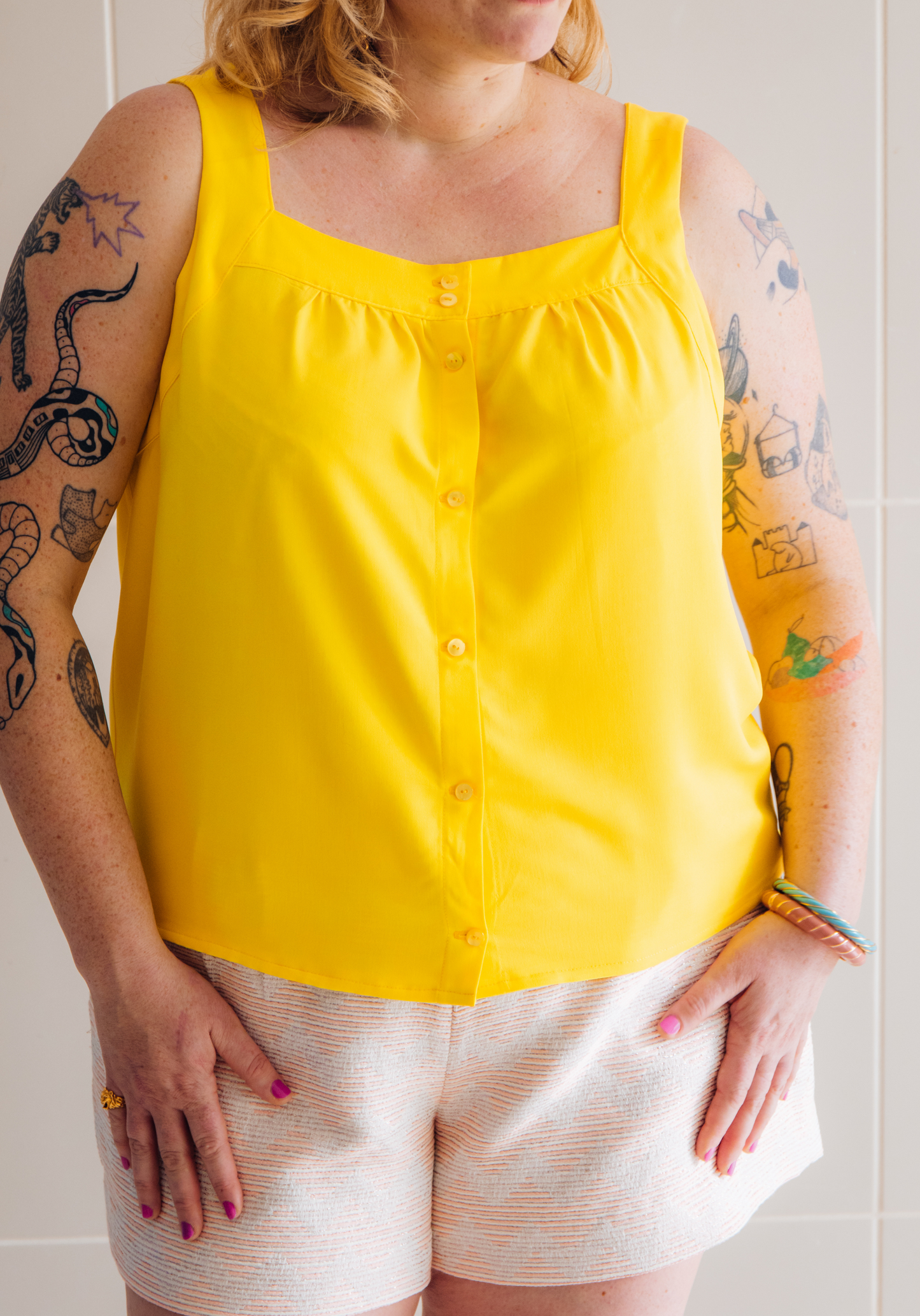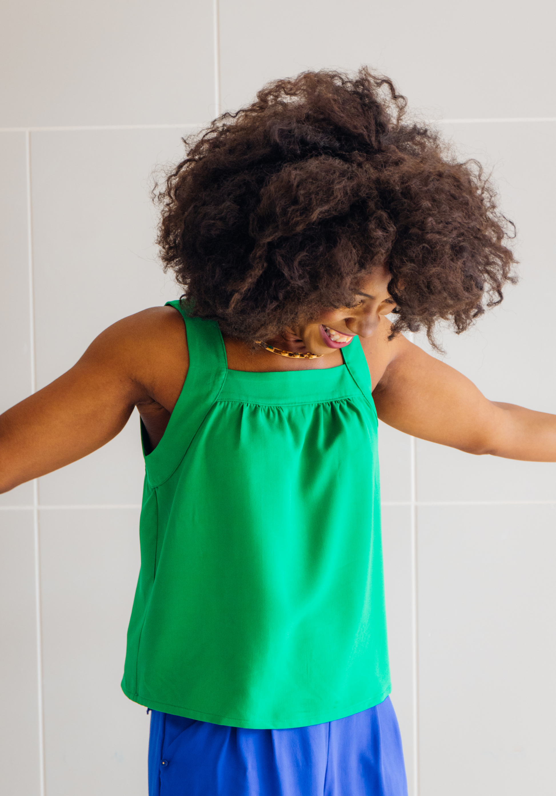 The Salto Top sewing pattern by Maison Fauve is a structured but casual summer top with a lovely pleated detail along the square neckline.