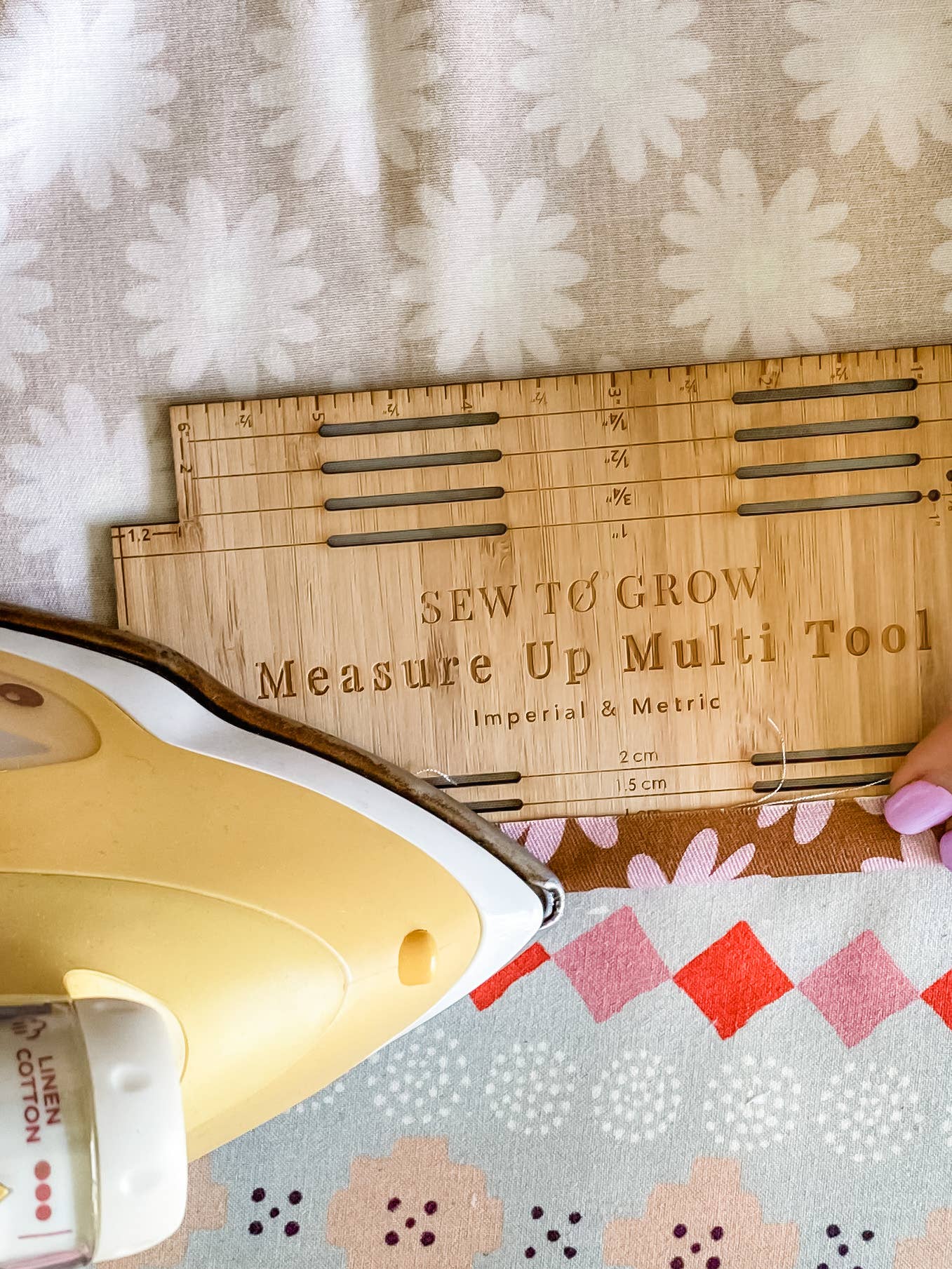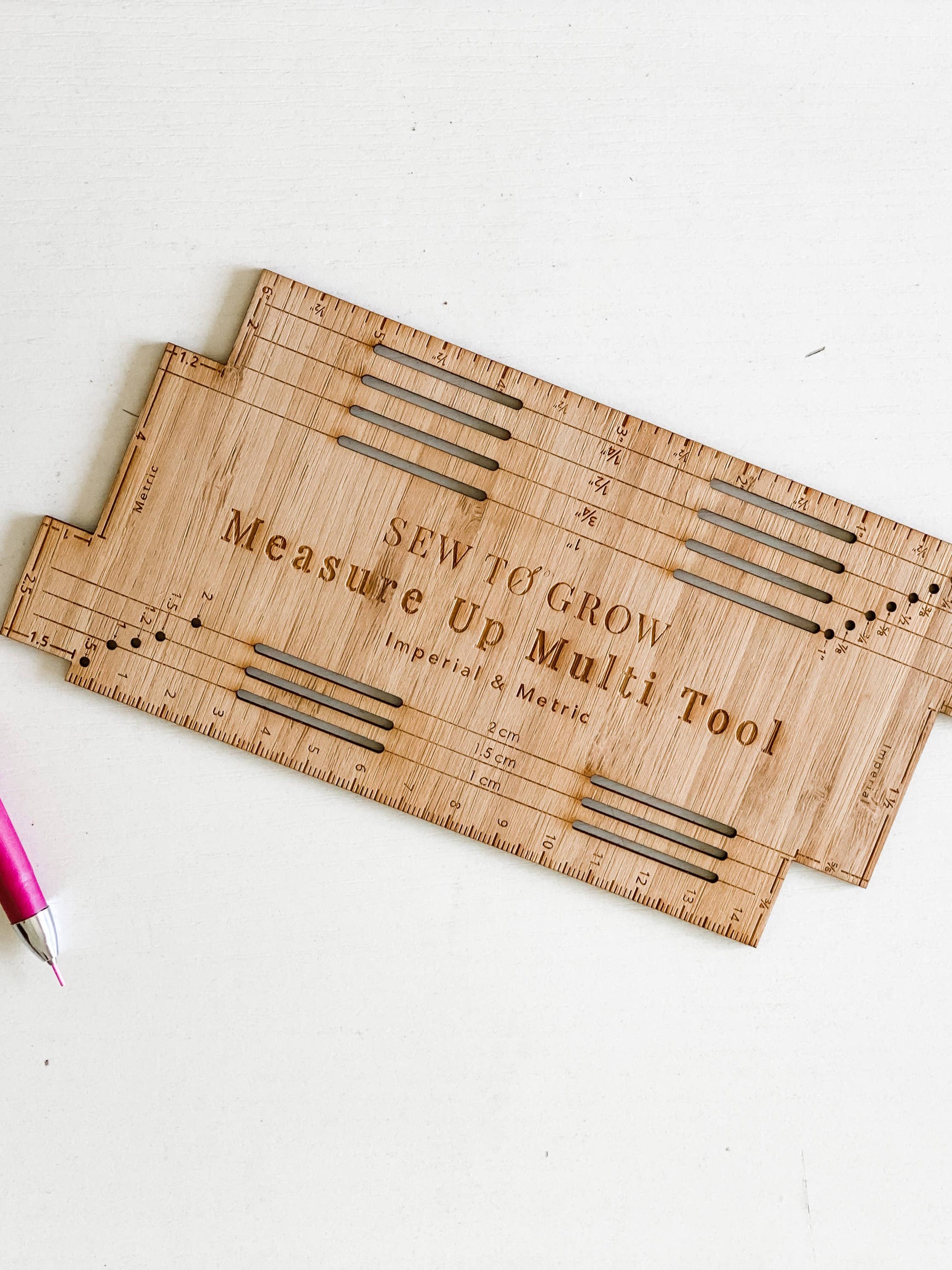 Our latest original design from Sew To Grow, The Measure Up Multi-Tool, is a must have in your sewing room! It is made in Australia from premium bamboo and has both imperial and metric measurements, making it easy for you to convert and figure out distances.