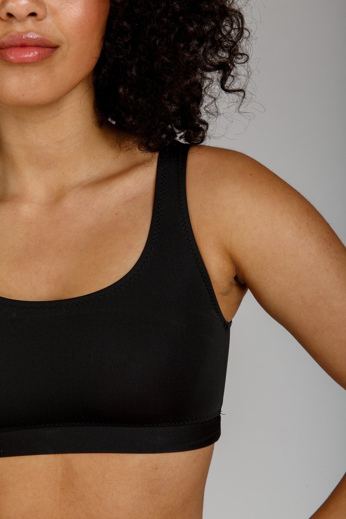 Swim fabric with at least 50 percent stretch and good recovery such as polyamide or lycra.