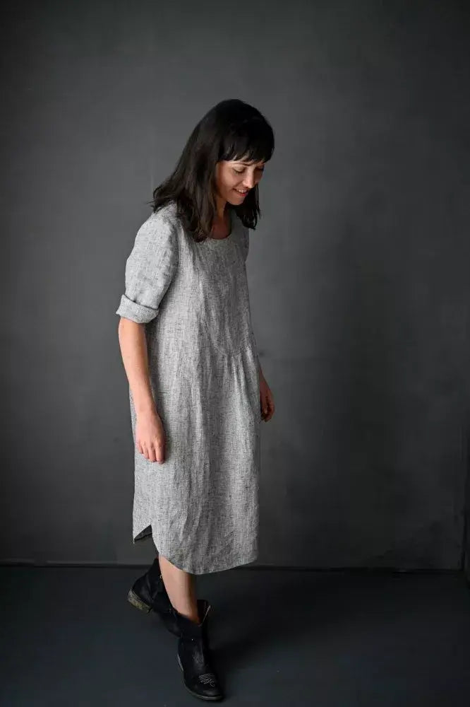 The Dress Shirt is a lightweight, versatile dress inspired by Grandpa's shirt. It is a relaxed, classic cut to be worn loose and is absurdly comfortable. Includes a rolled up sleeve or a short sleeve.