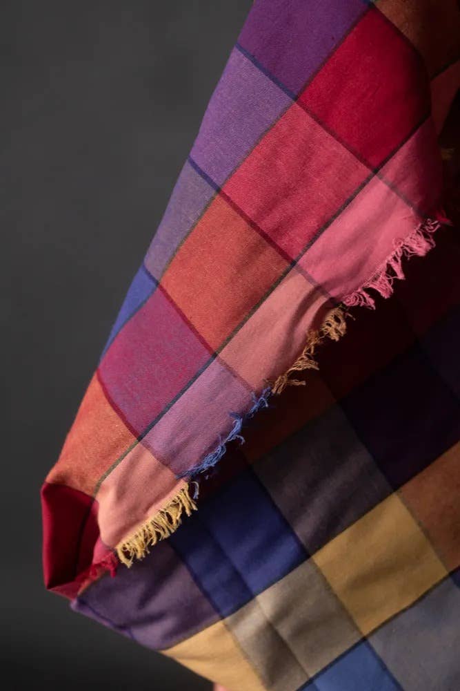 A bold check in an array of autumnal berry tones with a buttery soft texture that would gather beautifully. 100% organic cotton.