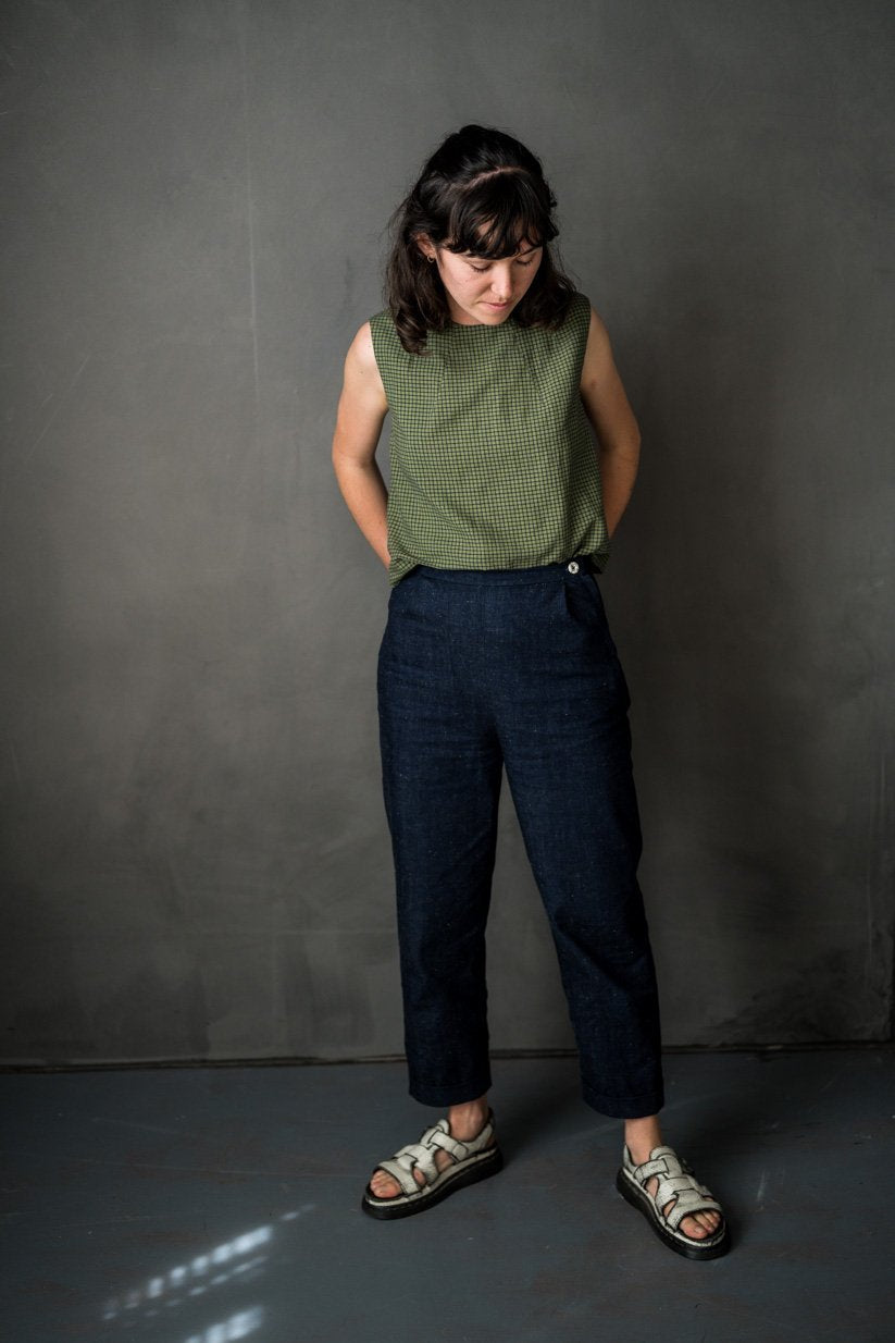 The Eve trousers pattern by Merchant & Mills is cropped, with a slightly tapered leg and optional turn ups. It’s an easy garment to make, fitting neatly at the waist and over the hips with a simple side zip and two back pockets. Choose to make pleats or darts into the waist seam.