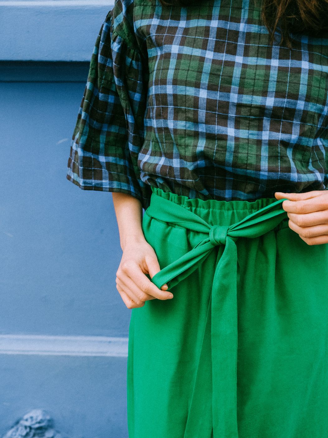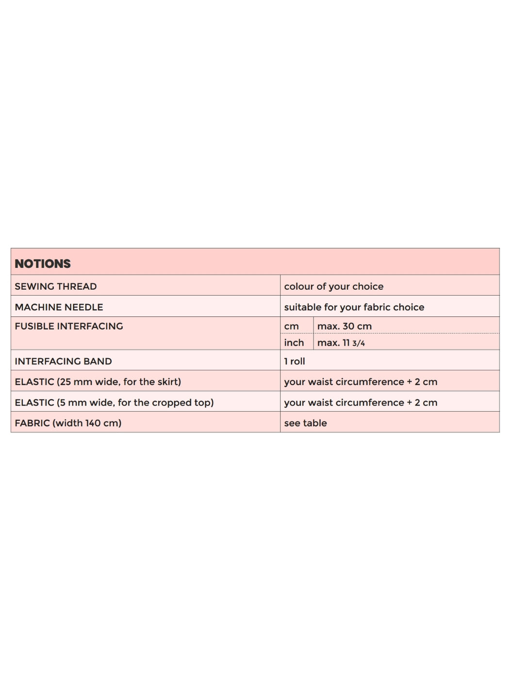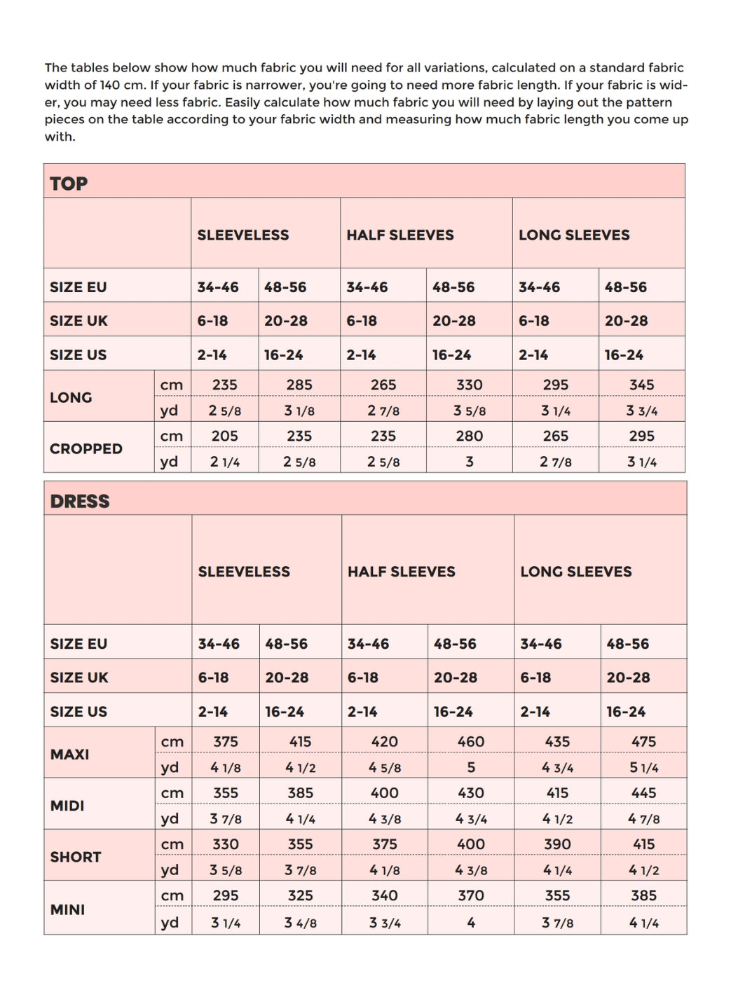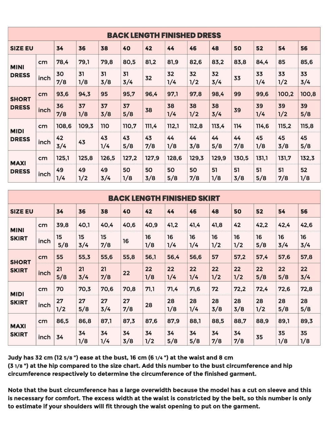 Make a dress or top with short or long sleeves. Or a skirt with a paper bag waist. All the variants are included in the digital pattern file. With this set of sewing pattern parts you can make up to 26 different garments!