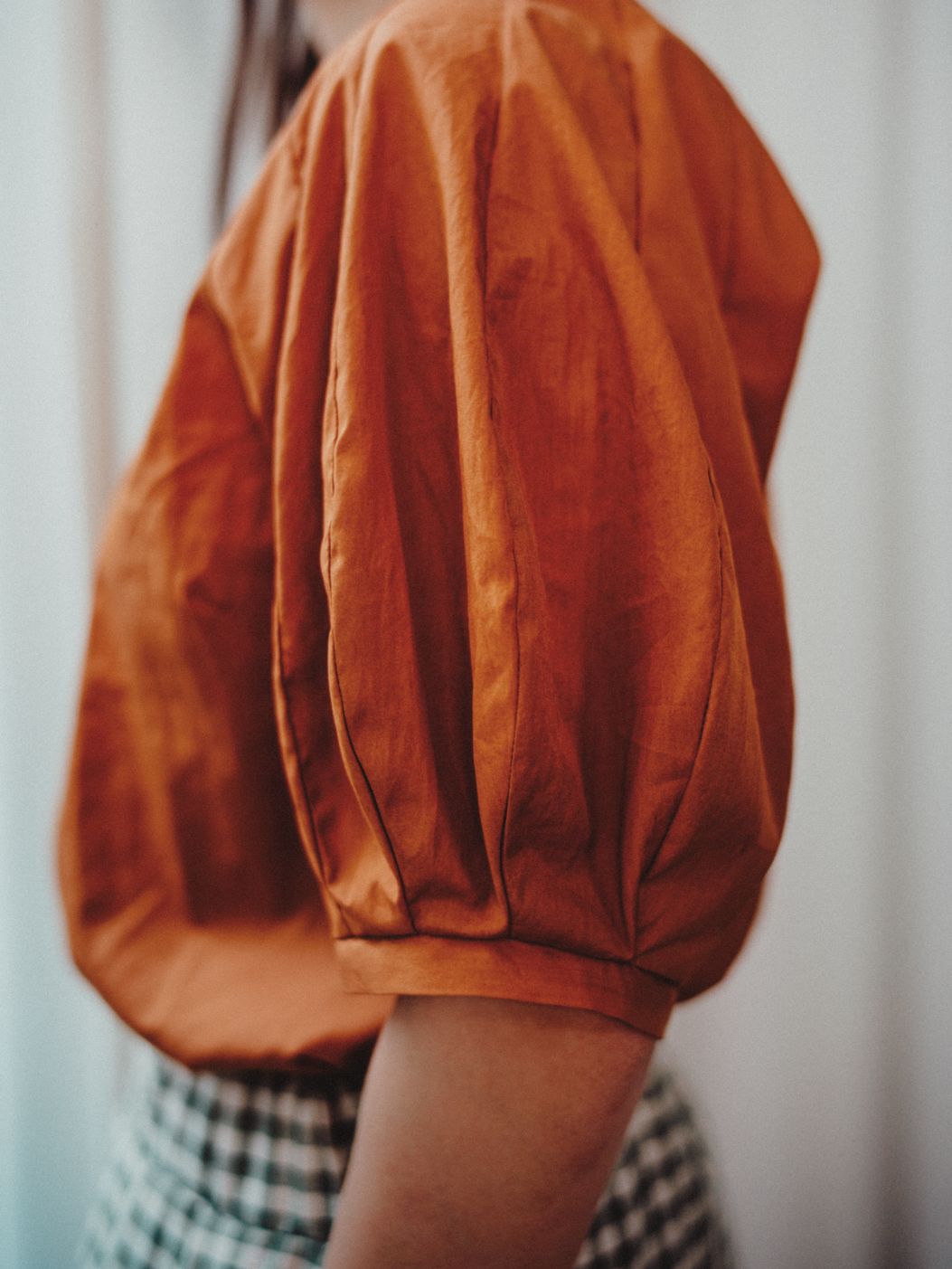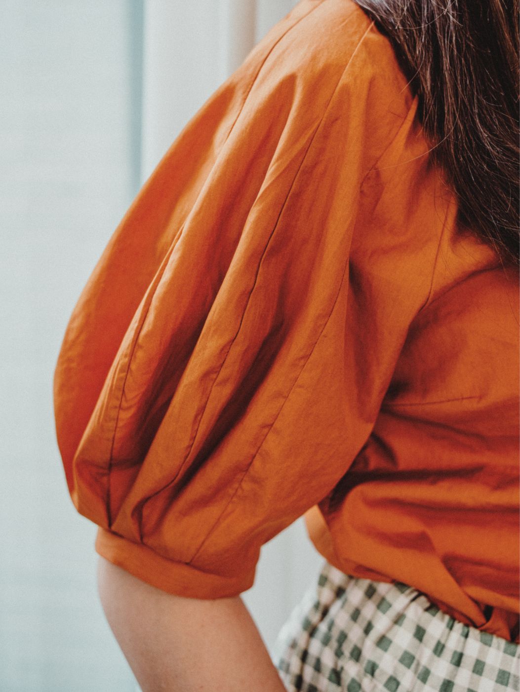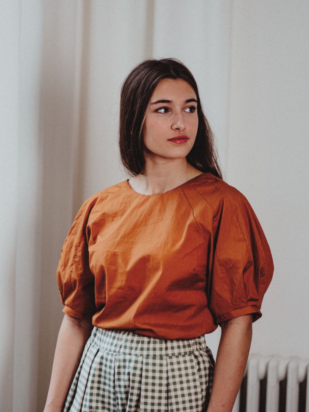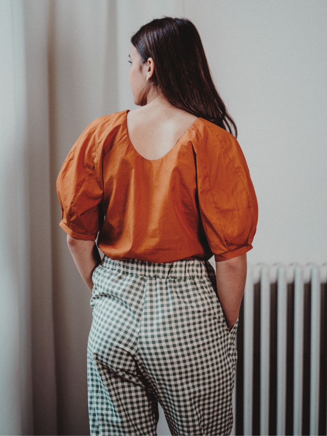 Bold sleeves, effortless style! Odell is a playful yet beginner-friendly top or short dress featuring striking puff sleeves—no gathers needed, just cleverly shaped seams. With a high round neckline in the front and a deep scoop in the back, she’s designed to turn heads.
