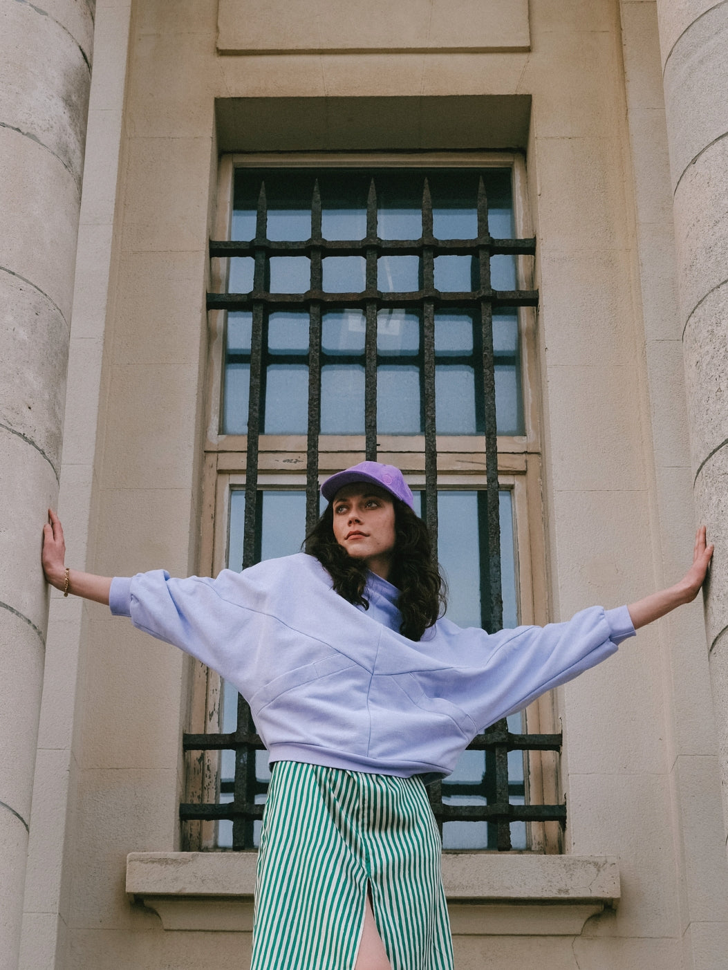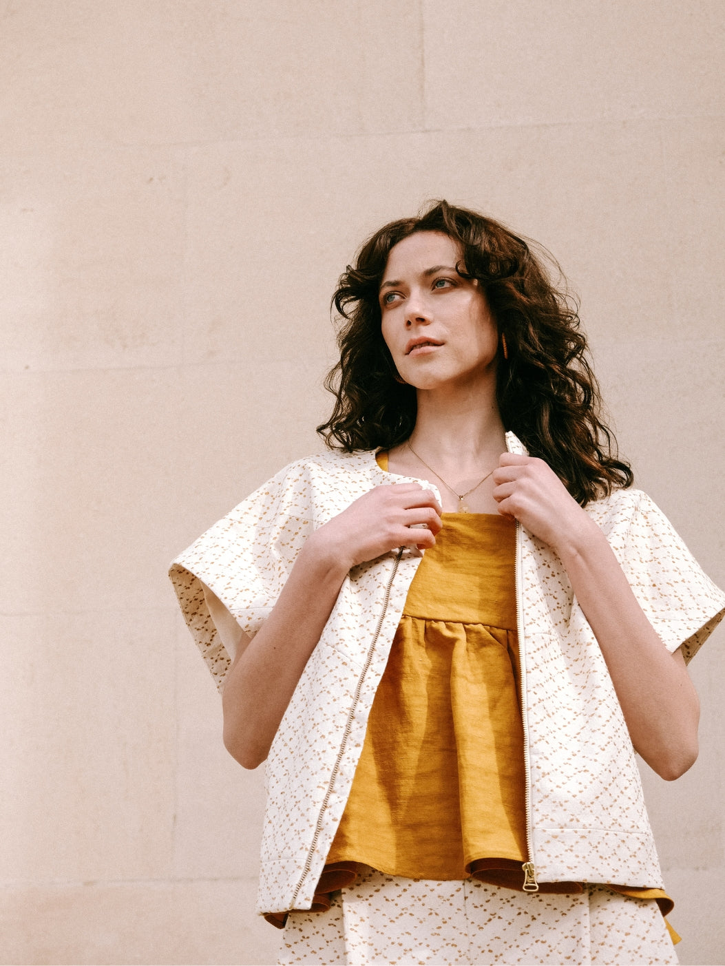 Inspired by the brightly coloured training jackets of the 1980s, Rava is the epitome of comfort. With wide batwing sleeves, it has style, elegant nonchalance and balanced out retro vibes. This is a great sewing pattern for a sweater, a (lined) jacket or a sleeveless body warmer. This set of pattern parts allows home sewists to make no less than 28 different garments!