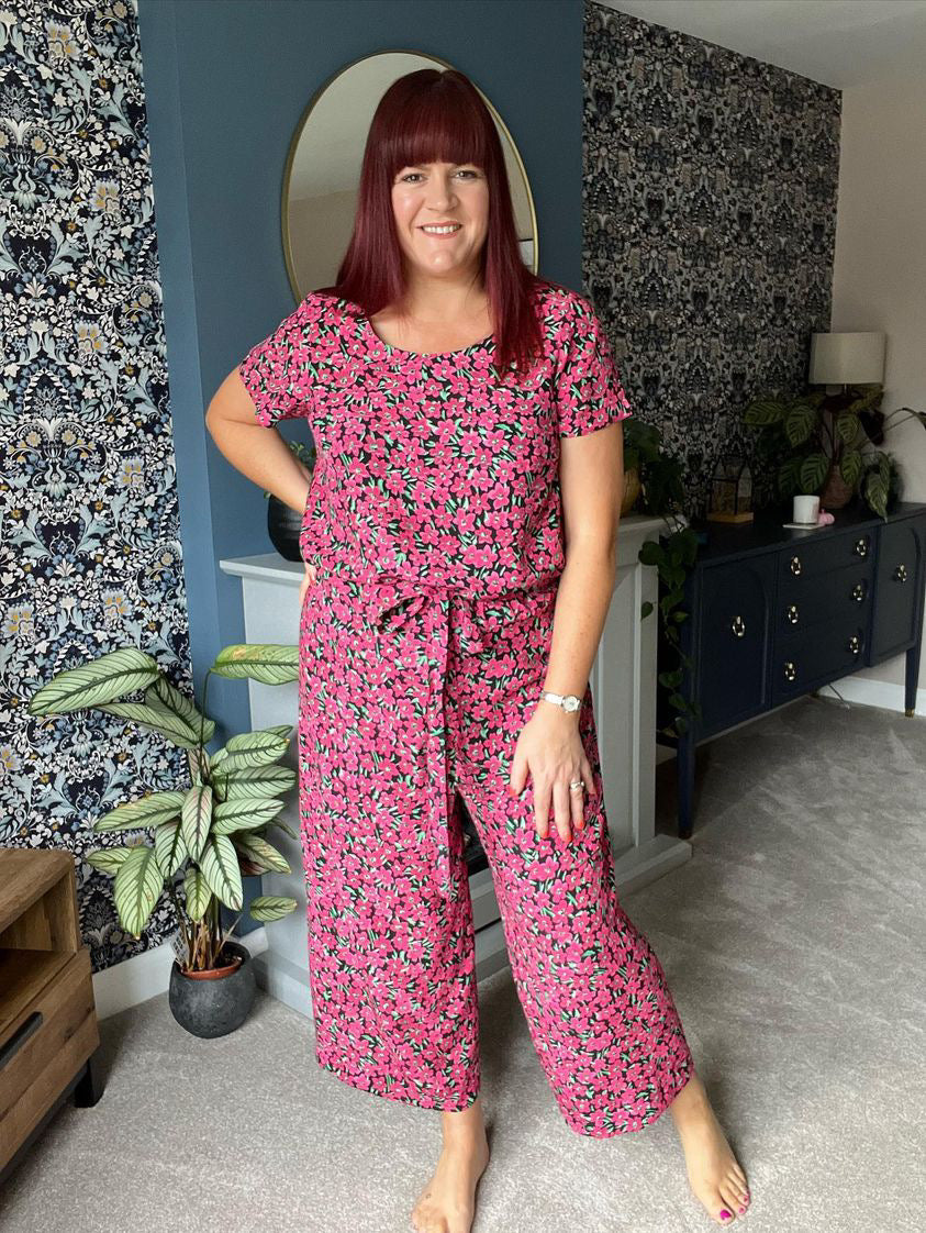 This is a jumpsuit like no other, the perfect hybrid of all the features of a wrap dress but with the comfort of a jumpsuit. The cropped or full length wide-leg trousers and simple bodice oozes style but the secret is in the design--no more naked toilet trips!