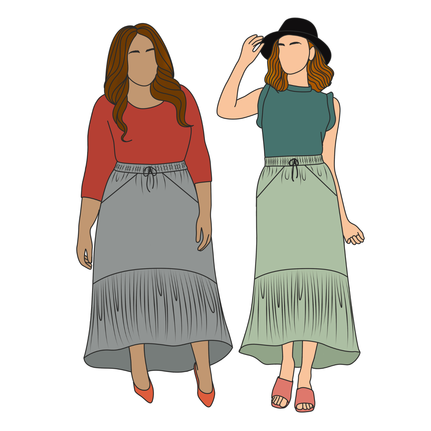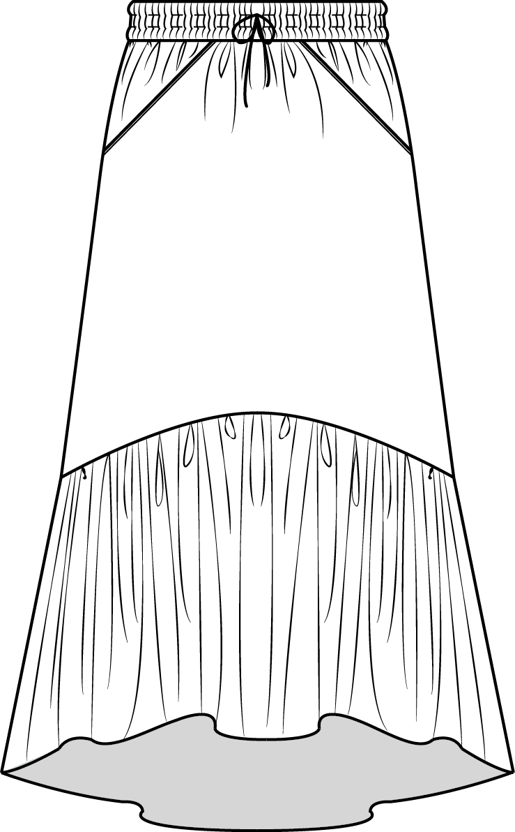 This skirt is easy to make and to wear. The elasticated waist and pockets make it practical for everyday wear and the high/low gathered flounce adds a lovely shape.