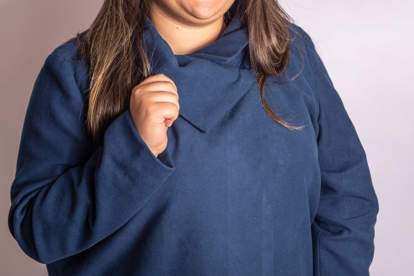 The classic lines and style of this coat make it the perfect addition to your wardrobe, and a great place to start if you've never sewn a coat before. It features a simple cross-over front and oversized collar fastened by two studs.