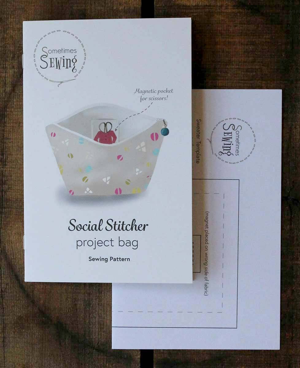 Any social stitcher will fall in love with this beautiful and functional zippered bag for transporting projects to any gathering! It’s the perfect size for storing small quilts in progress, several skeins of yarn, or any hand stitching project. The inside includes both large and small pockets for notions of all sizes and don’t forget the most adorable magnetic felt sweater that will securely store your favorite pair of tiny snips. 10 pages 5.5" x 8.5" Soft cover with fold out placement guide and cutting template.