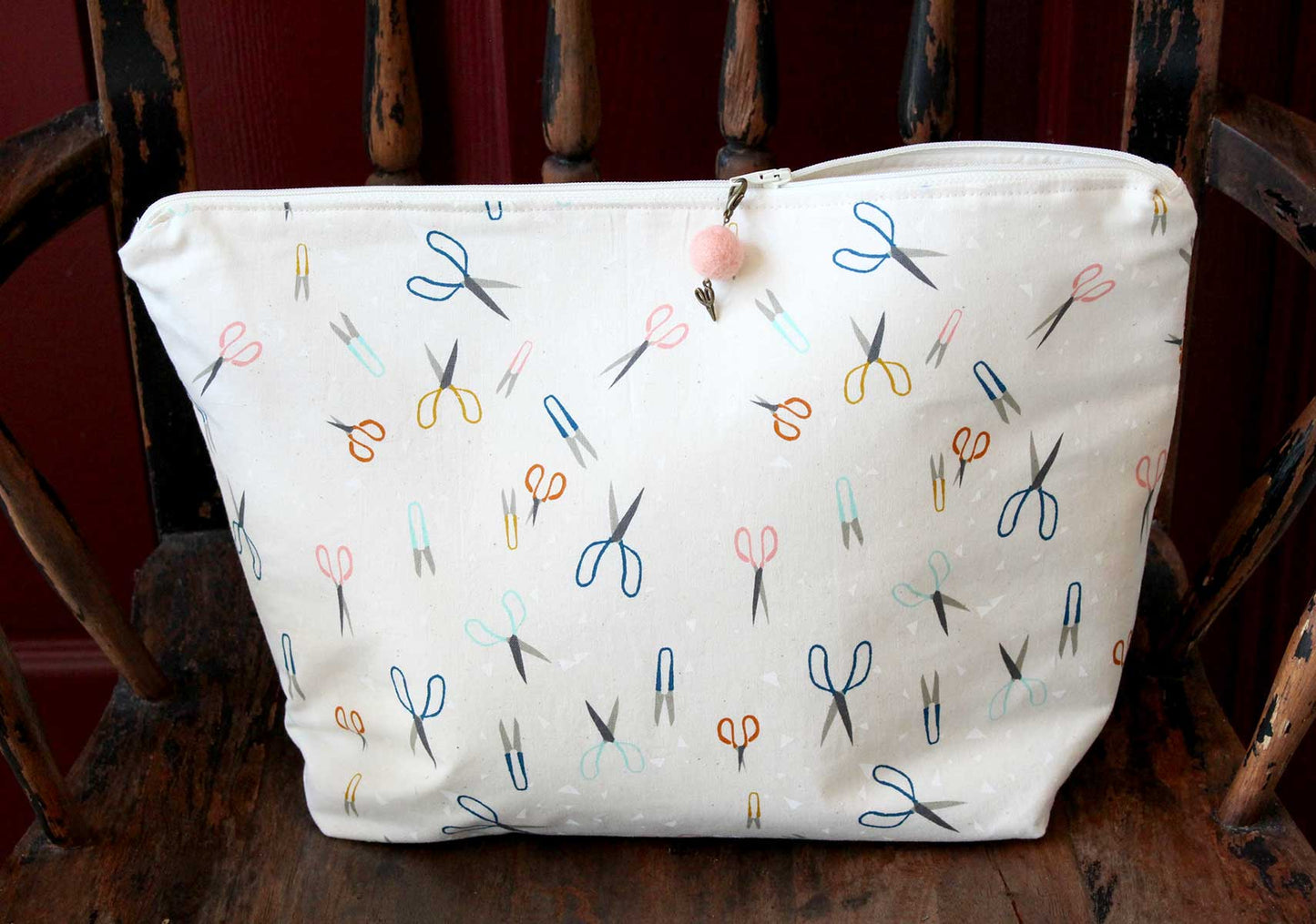 Supplies needed: - exterior fabric—½ yard (can also use 2 fat quarters) - lining fabric—& frac 23; yard (can also use 3 fat quarters) - fusible interfacing—11/5 yard of 20" wide medium weight. - fusible fleece—12" x 30" piece. - felt—21⁄2" x 31⁄2" square for decorative scissor pocket.