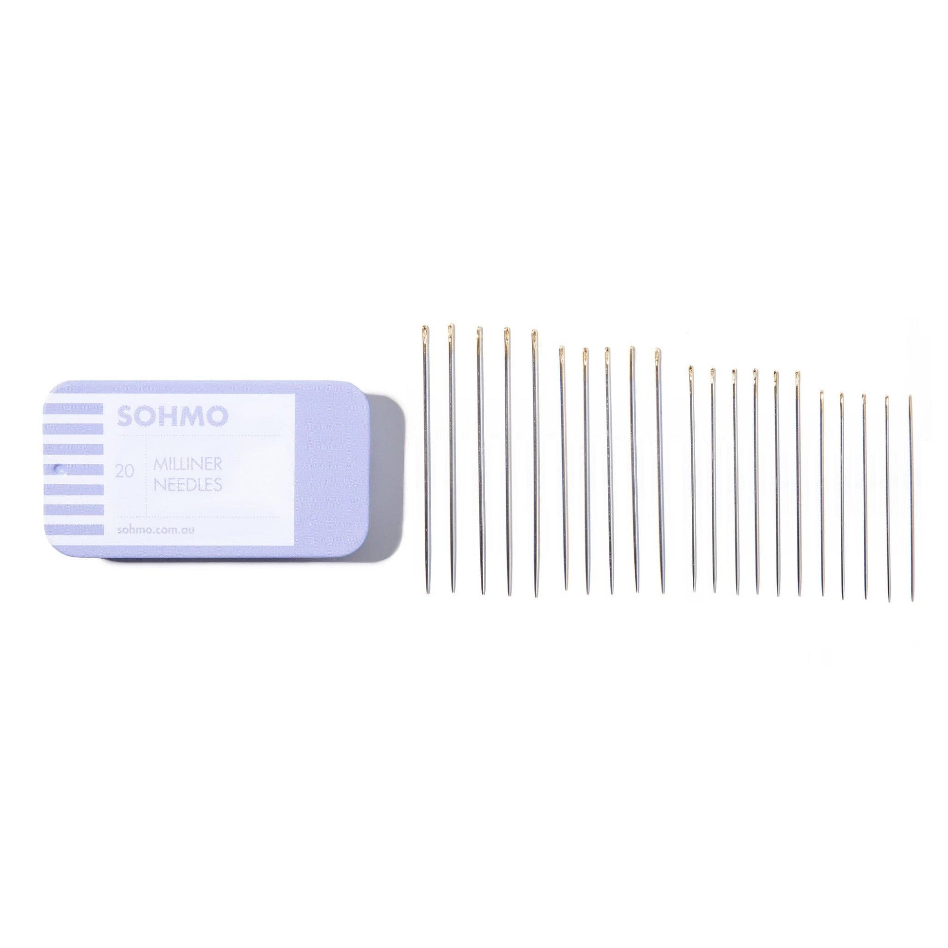 Milliner needles are long with round eyes, and traditional used for hat making. They are also traditionally used for pleating or smocking, but are great for a variety of projects. Made in Japan, these needles are snag-free, sharp and strong. Packaged in a handy tin with sliding lid.