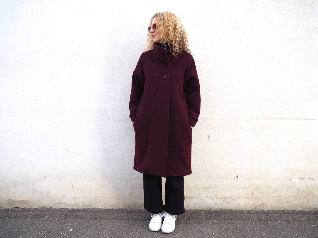 Soft medium weight wool coatings including wool/cashmere blends, wool tweed, wool boucle and double wool crepe. Also suitable for heavy weight linen. Not suitable for super-fine or thick fabrics.