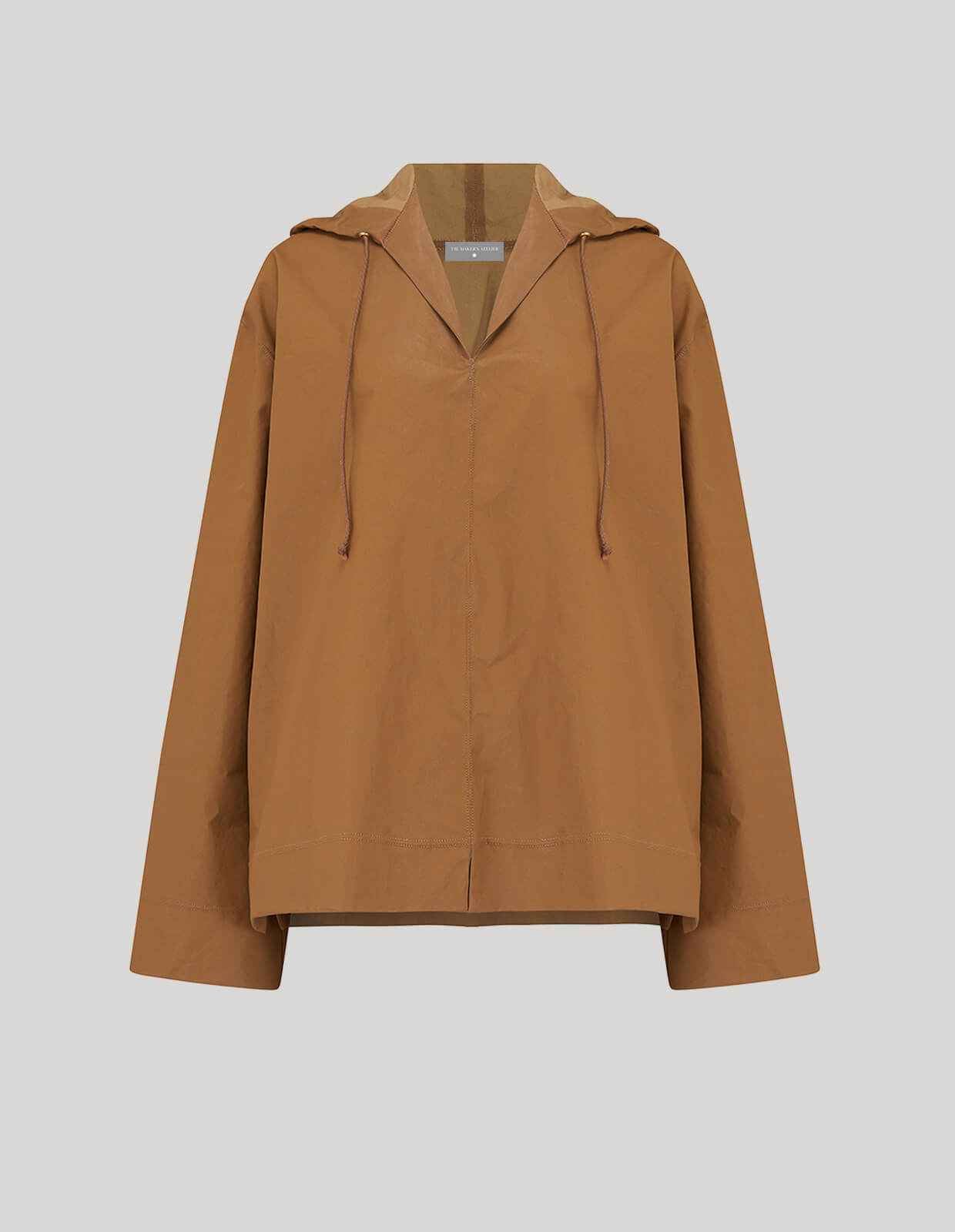 Light to medium weight woven fabrics including cotton and linen. The long sleeved hooded top works well in waterproof fabrics and oilskin.
