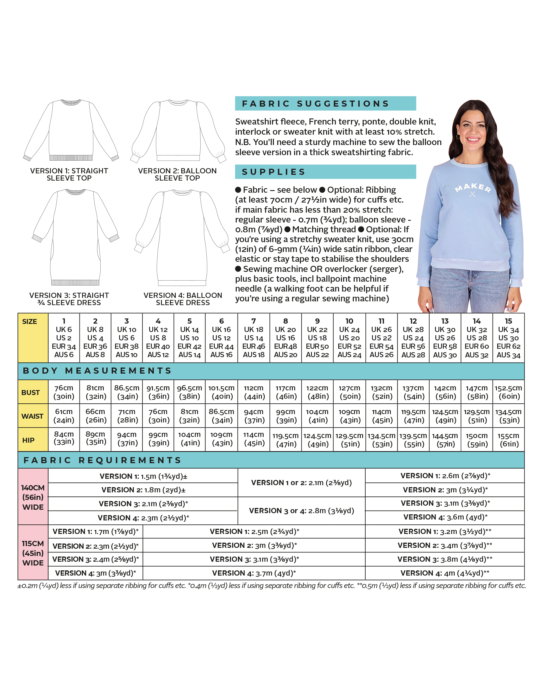 Note that you’ll need a sturdy machine to sew the balloon sleeve version in a thick sweatshirting fabric.