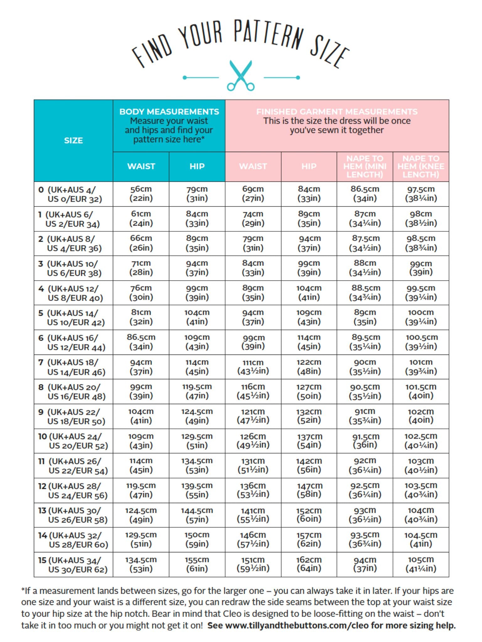 Sewing pattern sizes are labelled with generic numbers from 0 to 15. Use the body measurements to determine your size.