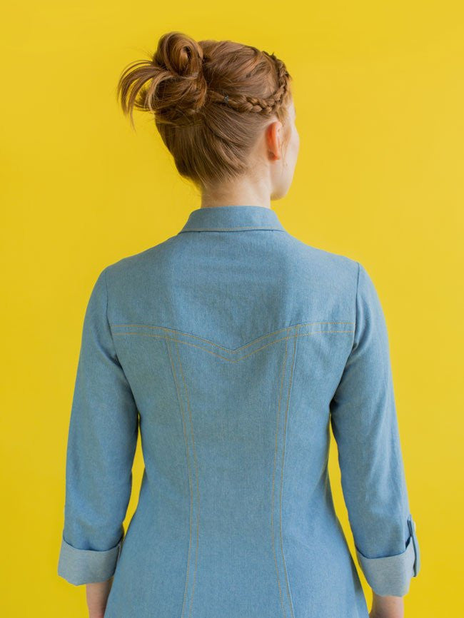 Rosa has a flattering semi-fitted shape thanks to gently curved princess seams on both front and back. Our favourite feature is the pointed back yoke, which looks stunning highlighted with decorative topstitching or piping.