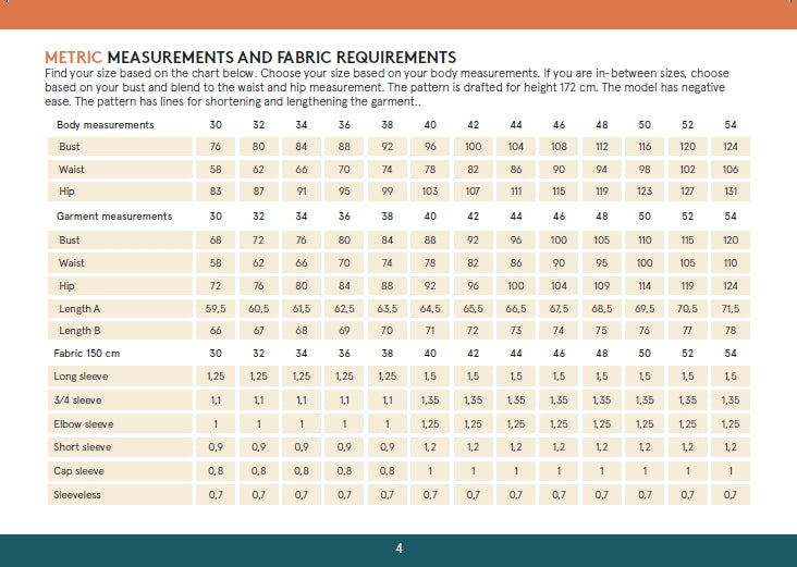Use light to medium weight jersey fabrics such as jersey, rib or other knitted fabrics with up to five percent lycra or elastane. It will also work in cotton, rayon, polyester, silk, modal or tencel.