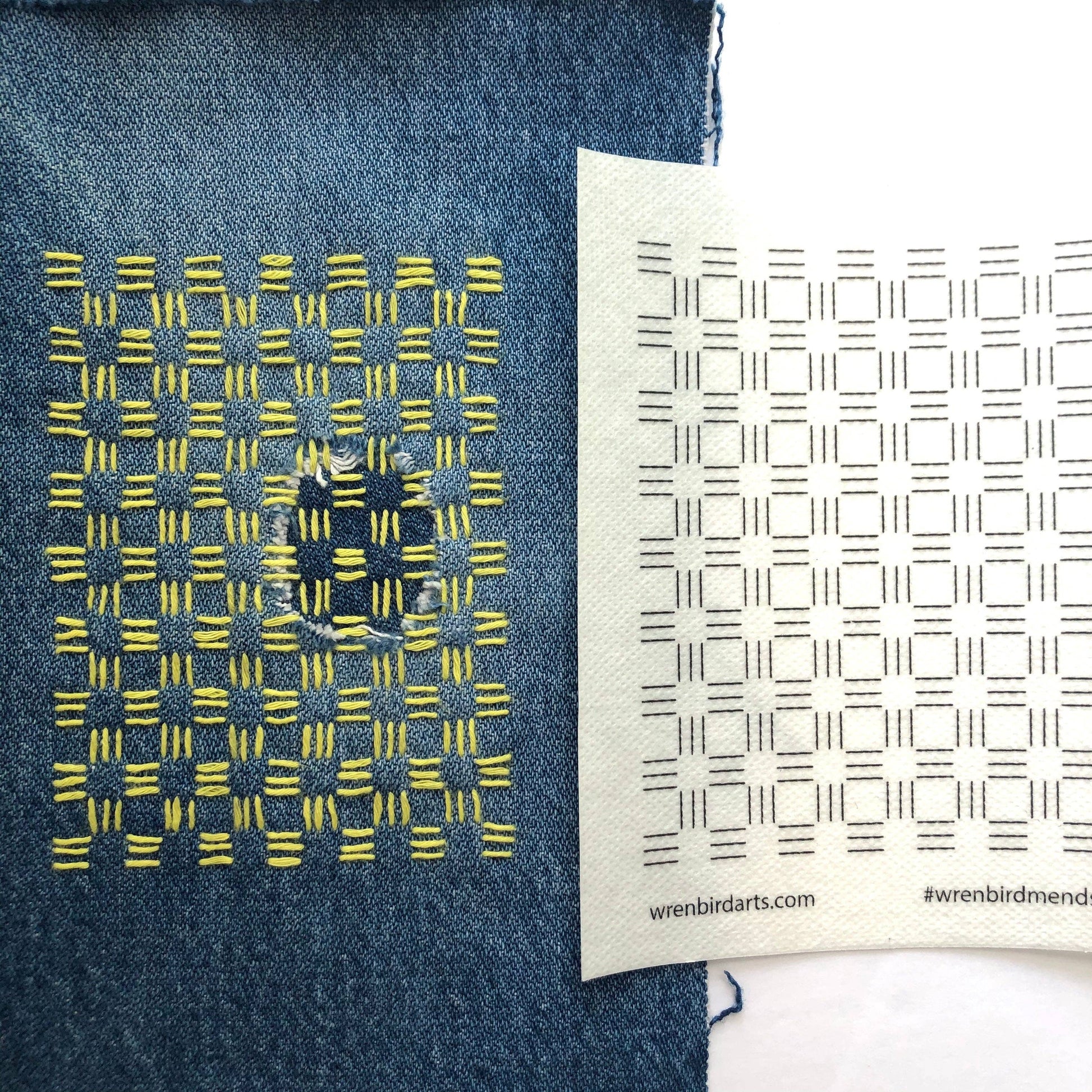 Created by Erin of Wren Bird Arts, these water-soluble mending transfers are perfect for anyone looking for an easier way to transfer a beautiful design onto clothing, coasters, tablecloths or any fabric. No need for rulers and pencils, tracing paper, or an iron. Stick the transfer to the area to be mended, stitch the pattern, and then rinse off the sticker, and reveal your precise stitched pattern.